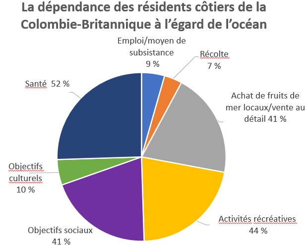 - La dépendance à l’égard de l’océan pour des raisons culturelles, d’emploi et de moyens de subsistance, et de récolte directe est moindre chez les résidents côtiers de la Colombie-Britannique.