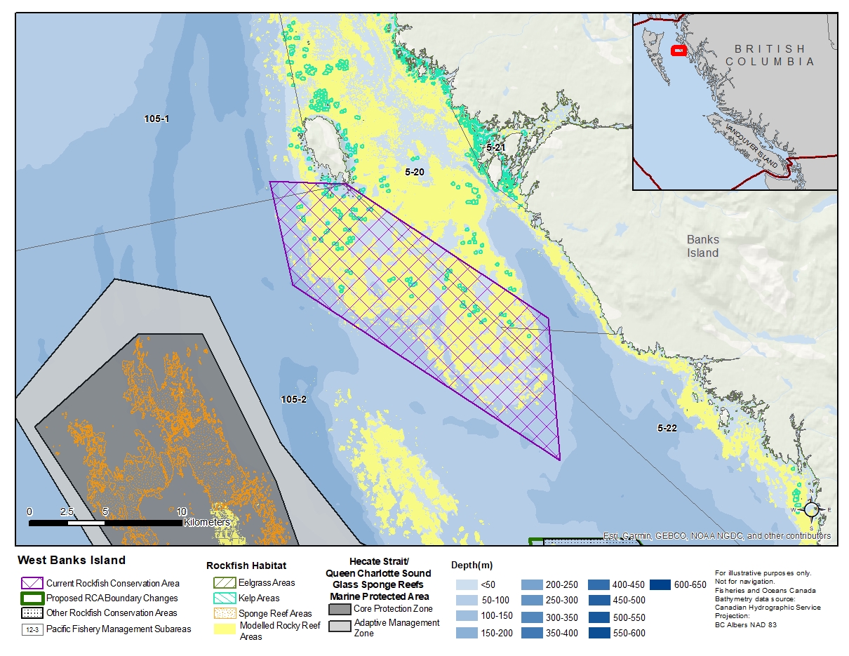 Those waters of Area 105 and Subareas 5-20 and 5-22 that lie inside a line that: