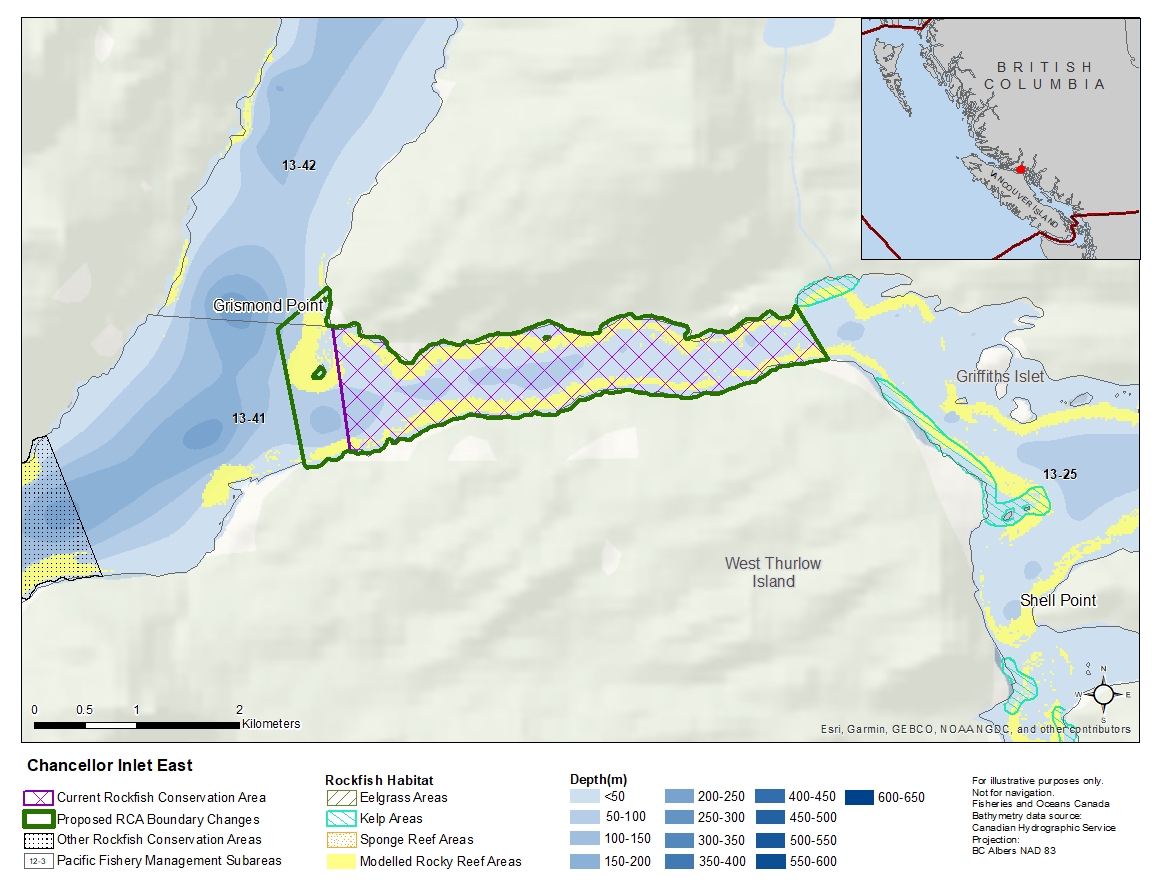 | to | 50°26.300'N | 125°35.449'W | shoreline |