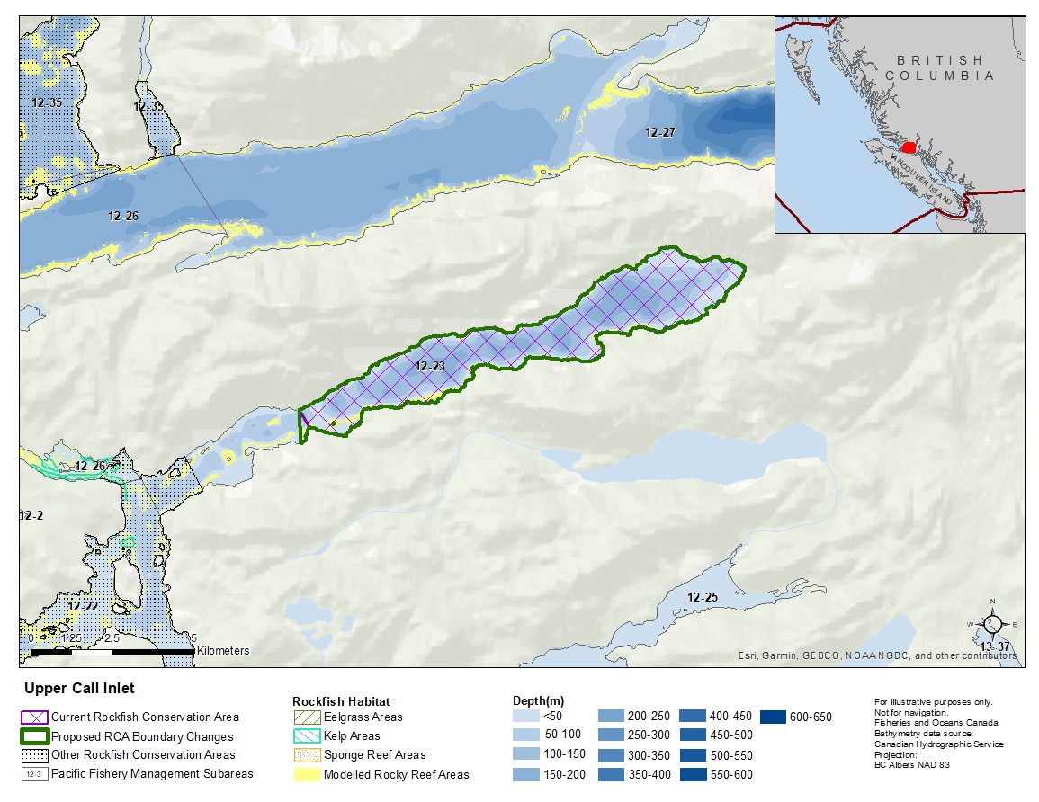 | begins at | 50°35.874'N | 126°07.855'W | shoreline |