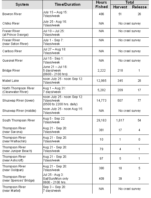 Resource Manager -Thompson/Columbia/Okanagan Rivers and Fraser River from Sawmill Creek to Deadman Creek. |